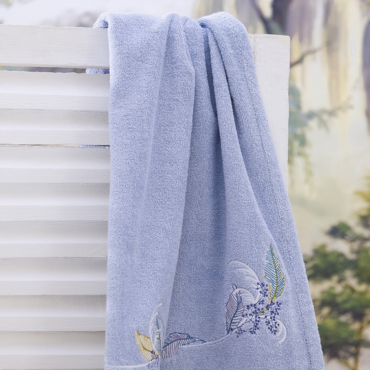 A lightweight towel, of 380 gram weight cotton, the Plumes towel is lavender in color. Embroidered with feathers to coordinate with the bedding of the same name.